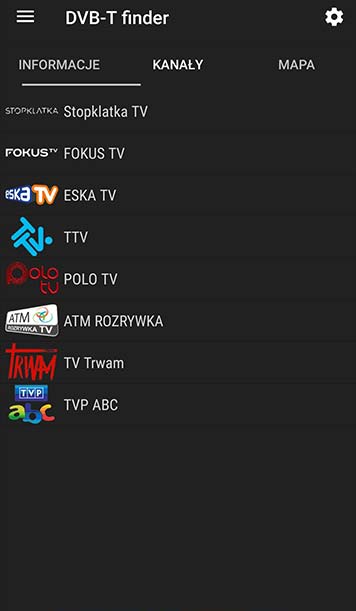 Wyszukiwarka najbliższych polskich nadajników DVB-T i T-DAB. Wyszukuje nadajniki na podstawie GPS lub podanego adresu. Dodatkowo wyświetla mapę oraz wykres zależności wysokości terenu od odległości na odcinku antena nadawcza – antena odbiorcza.